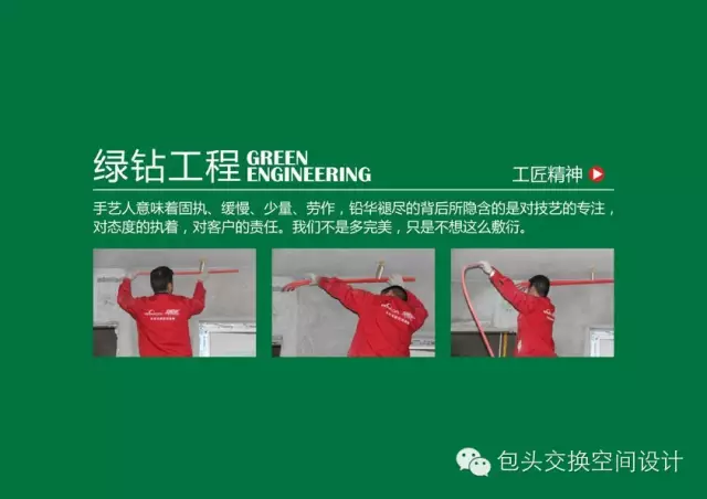 交换空间一直以“用心交换 空间无限”作为企业理念,以绿钻工艺树标杆,以客户服务为宗旨,满足客户个性化需求,被消费者誉为“更懂设计的整装企业。”