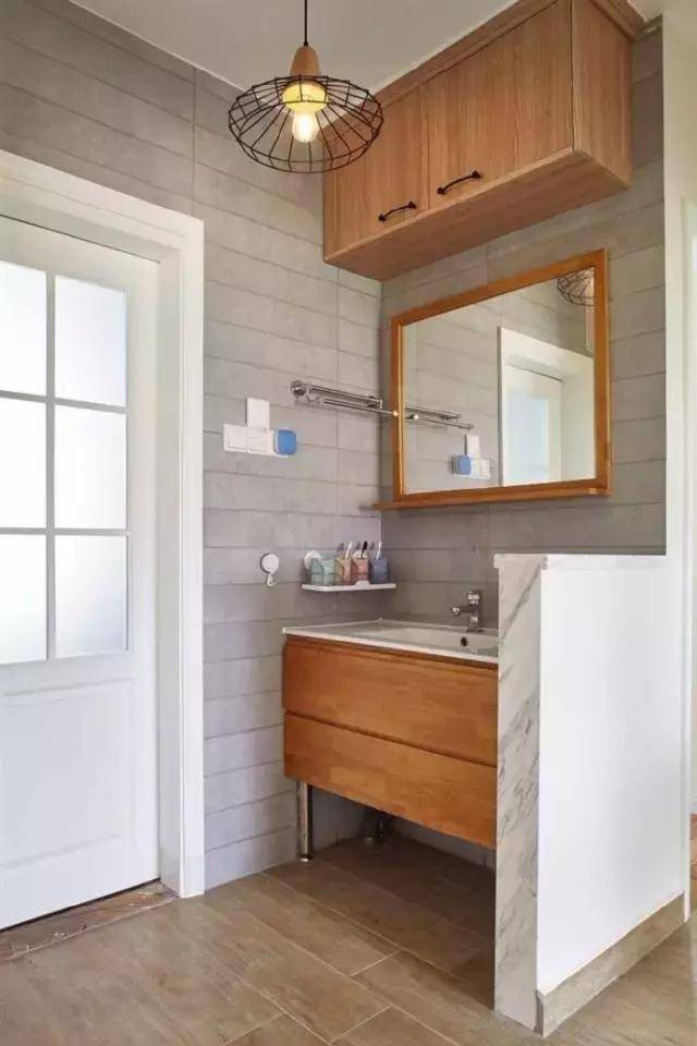 一般来说,外置洗手台的一侧最好装有隔断,这样不仅可以起到空间划分的作用,而且可以使这块貌似“突兀”的区域,更好地融入整个家装。
