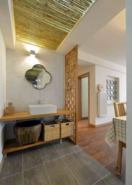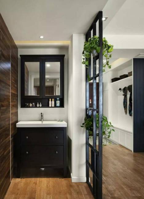 木质镂空隔断、黑框玻璃门、木格栅等各种各样的隔断形式,都可以使空间界限更加明确,遮挡杂物的同时也起到了装饰美化的作用。