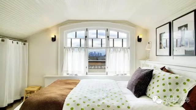 设计TIPS:一缕清风透过白色的棉质窗帘吹进卧室,绿色波点的床品和棕色绒毛毯子,让人仿佛置身于田野中,鼻息中都是阵阵的花香。