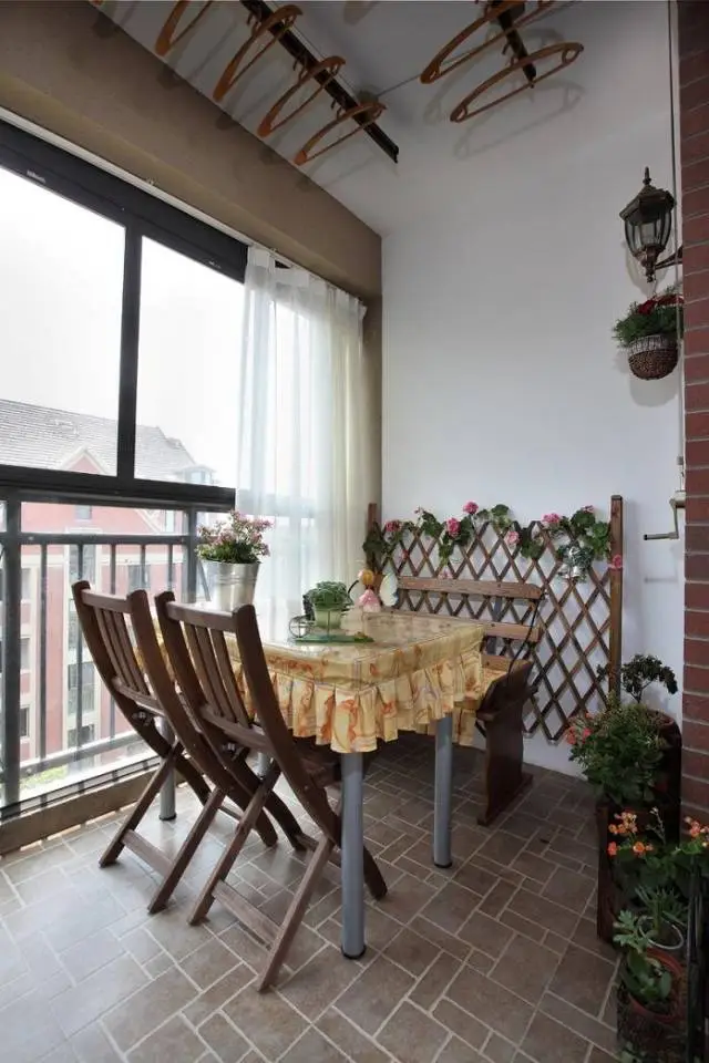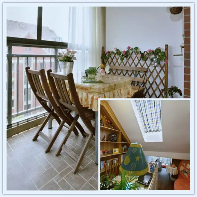 文艺小清醒的阳台,木质椅、小盆栽、复古灯,在一个阳光倾泻的午后,晒晒太阳喝喝下午茶,是多么的惬意。唯一的遗憾是当时我是想用很舒适的躺椅的,这种木质的椅子总是感觉老气了一些。