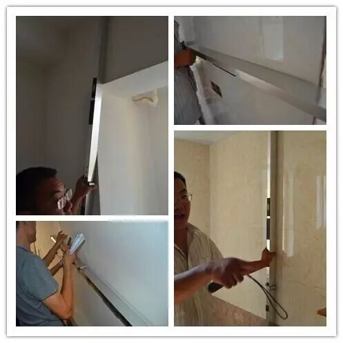 厨房烟道布钢丝网粉平后铺贴瓷砖,有效使用过程中由于烟道升温引起的瓷砖开裂现象。该户厨房瓷砖已经铺贴完毕,监管员用空鼓锤以及直角尺对铺贴情况进行了探查。