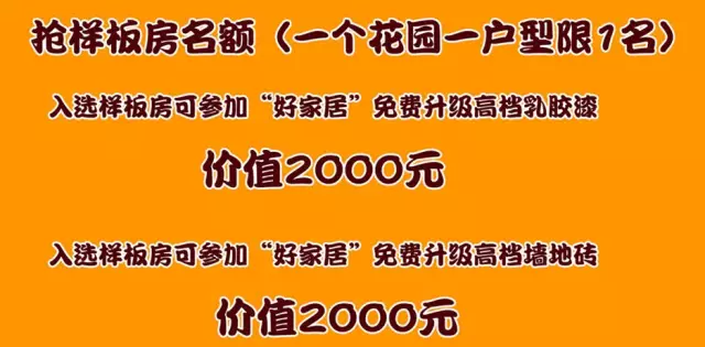 1,定装修可参加“漆出好家居”样板房免费升级多乐士家丽安乳胶漆,价值2000元;