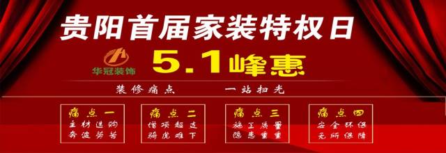 贵阳首届家装特权日---5.1峰惠,贵阳华冠装饰5系家装套餐,贵阳整体装修最高性价比586元一平。