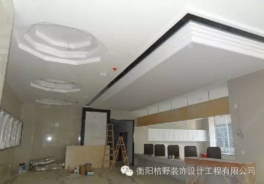 这个吊顶造型,看上去好象不要很多材料,但内行人就会发现,仅那几个八边形的顶部位就要好几张大芯板来挖。再加上三个阶级的深度。底层三厘面板处理,施工难度可想而知。加上面层的石膏板处理,更让工人师傅焦头烂额。谁能算算,这个造型如果只看表面,它的报价是多少?