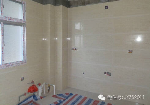 3、贴地砖:厨卫及阳台地砖的铺贴