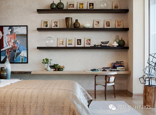 这绝对是桔子小编个人最喜欢的,设计一个临时阅读区。因为卧室安静、私密的特性,在角落设置的临时阅读空间更具有独享性和安全感。另外,在睡眠之前做一次短暂的阅读,也会大大提高你的睡眠质量哦!