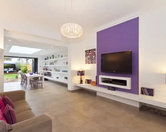 整体柔和很让人心动,晚上与亲爱的家人一起,窝在沙发中,在柔柔的电视墙下,映着温暖的“烛光”,温馨弥漫。