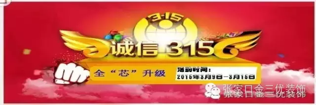 一年一度的“3.15”又将来临,随着人们生活水平的日益提高,家庭装修逐渐成了人们生活中的一件大事,人们消耗在装修上的费用也与日俱增,动辄数万、几十万、甚至上百万元。然而,家庭装修涉及水、电、气、木和油漆诸多方面,在设计过程中如果不够规范,很容易产生质量问题,引起纠纷。在此诚信3.15“国际消费者权益日”张家口金三优装饰联合品牌建材厂家举行 “以我之诚 报您所信”大型厂家直销特惠活动。